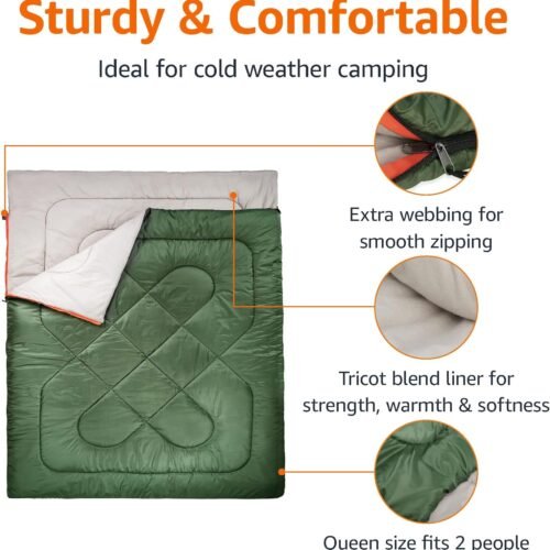 • Double Sleeping Bags for Adults, Queen Size 2 Person All Season for Warm & Cold Weather | Fits Kids 10-12 (Girls & Boys) - Lightweight & Waterproof Camping Essentials for Hiking,