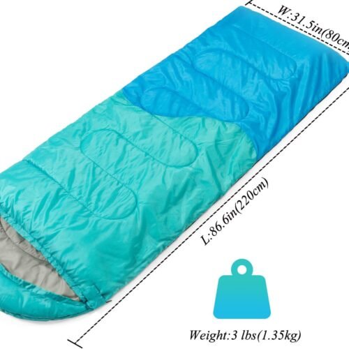 Sleeping Bag – 3 Seasons for Adults Kids Boys Girls Camping Hiking – Warm Cold Weather Lightweight Portable with Compression Bag for Backpacking in Spring, Summer, Fall and Winter
