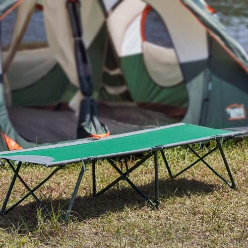 - Cot bed size 75″ × 27.5″ × 6.6″, folds down to 7″ × 14″, can be easily fit into your backpack. Cot weighs 4.7lbs and can support up to 330 pounds. With 10 points of contact with the ground to evenly distribute weight, the cot is very stable.